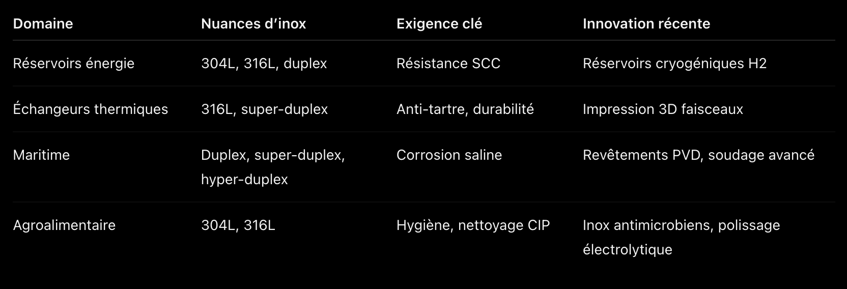 Cet article analyse le rôle de l’inox dans trois secteurs clés – infrastructures énergétiques, applications maritimes et sécurité alimentaire – en mettant en avant les innovations industrielles qui transforment l’usage de ce matériau.