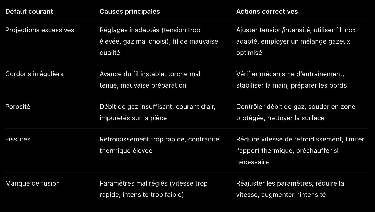 Défauts en soudage MIG
